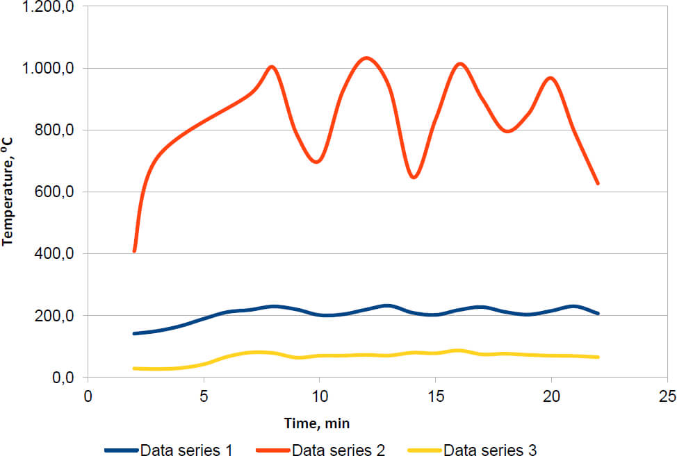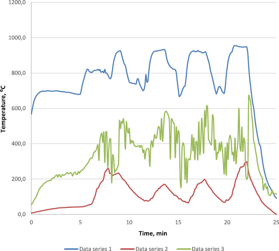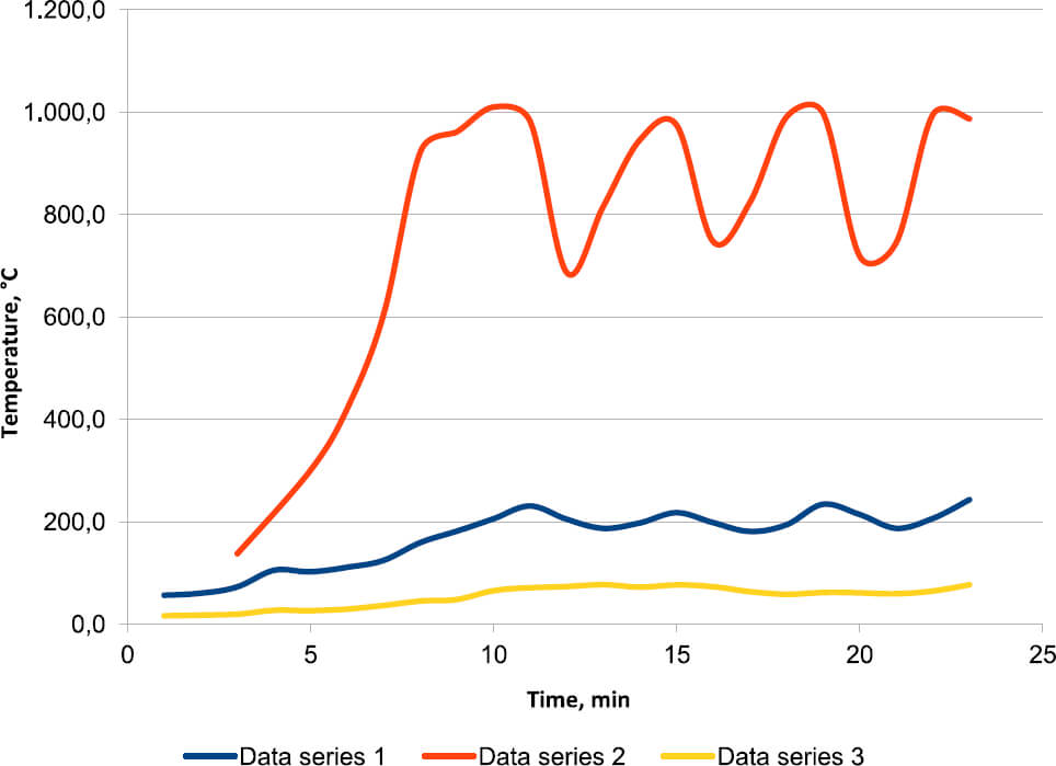 NOTE: The temperatures selected correspond to the measured values known in the literature. In addition, when applying the fire limitation blanket, it is possible that oxygen cannot be completely excluded (for example, if the electric vehicle is positioned over a gully). Additionally, the use case of the fire limitation blanket as protection for an electric vehicle standing next to a critical vehicle is also possible with the parameters selected here.