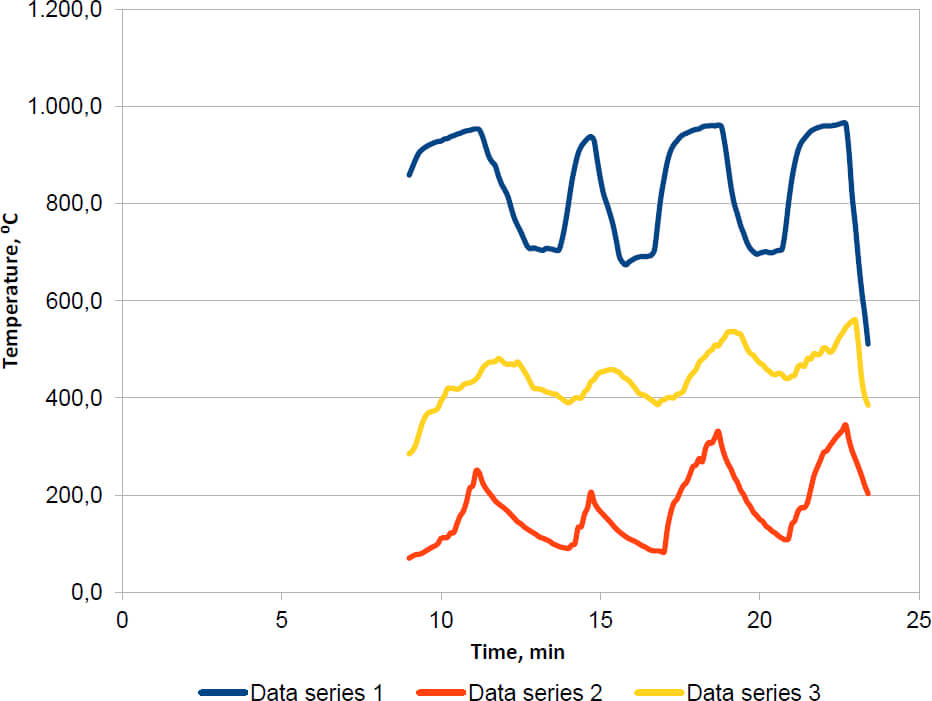 A.4.8 A.4.6 and A.4.7 can be carried out simultaneously if the temperatures described in Table A.1 and Figure A.3 are reached at the two thermocouples X1 and X2.