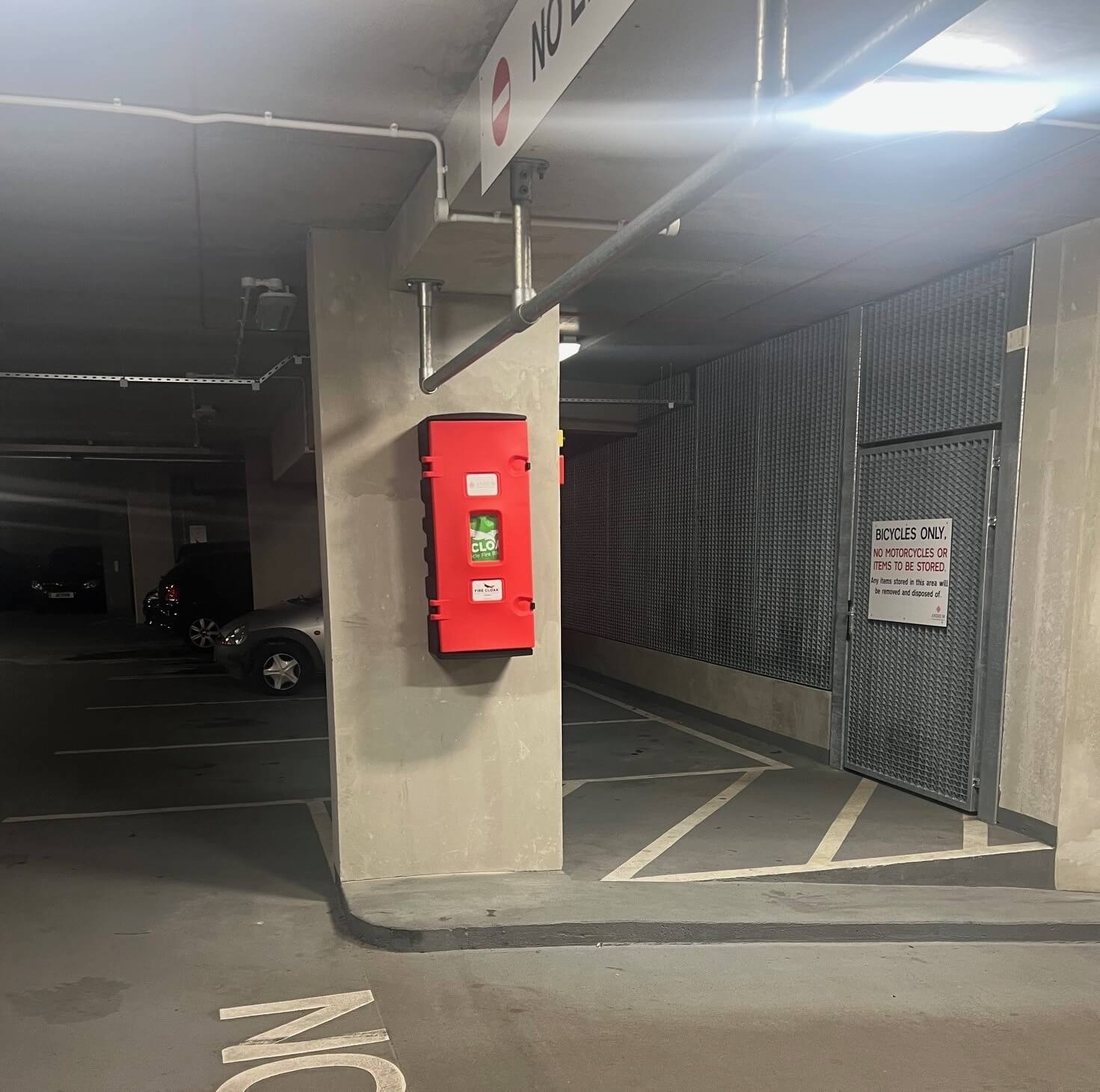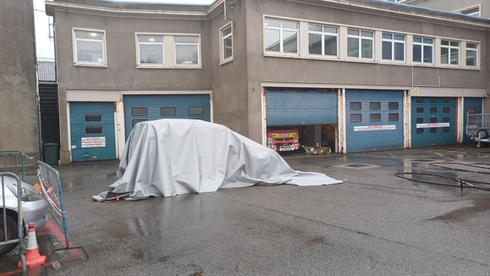 A pioneering solution in residential parking, the Fire Cloak™ Electric Vehicle Fire Blanket